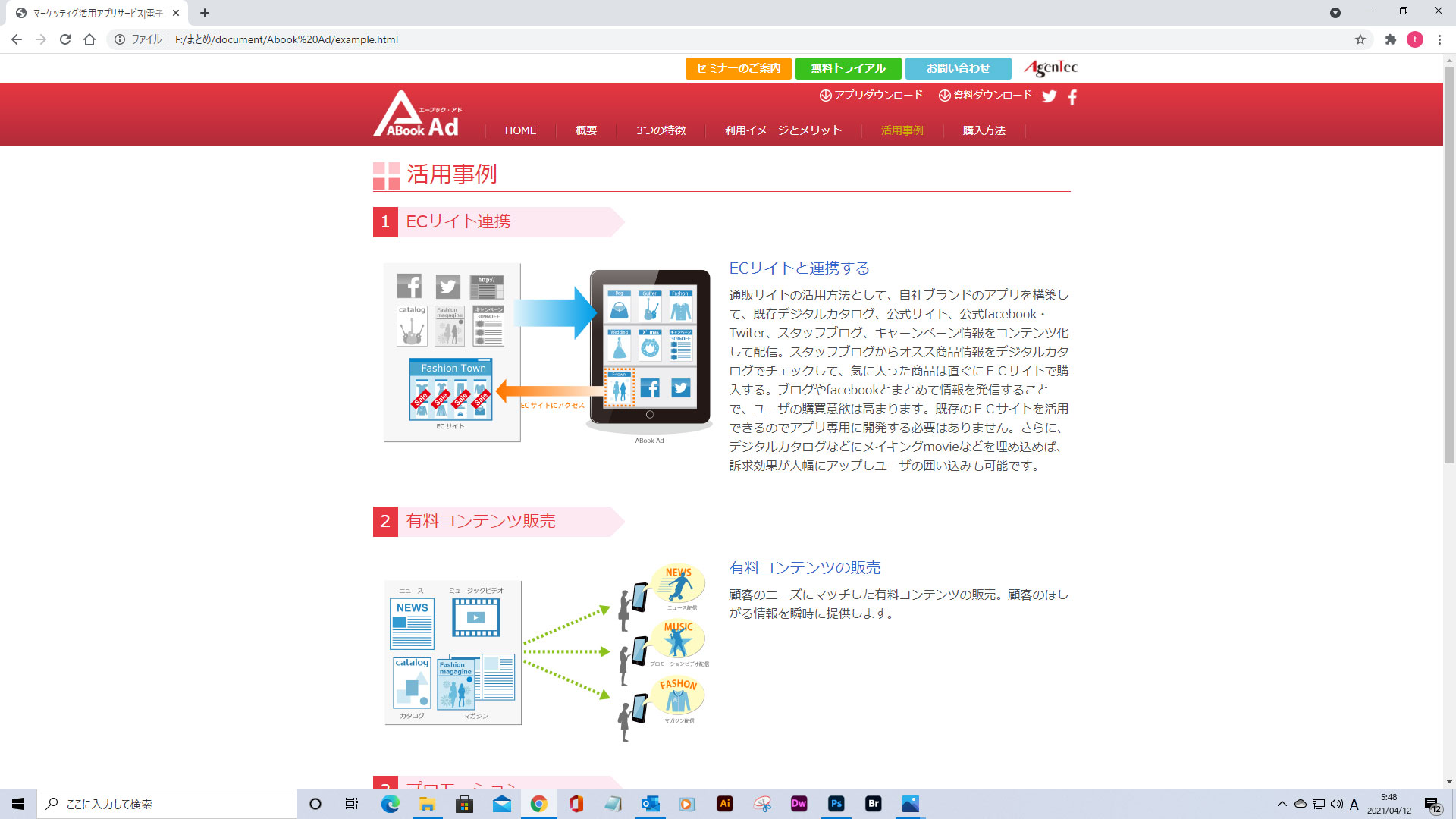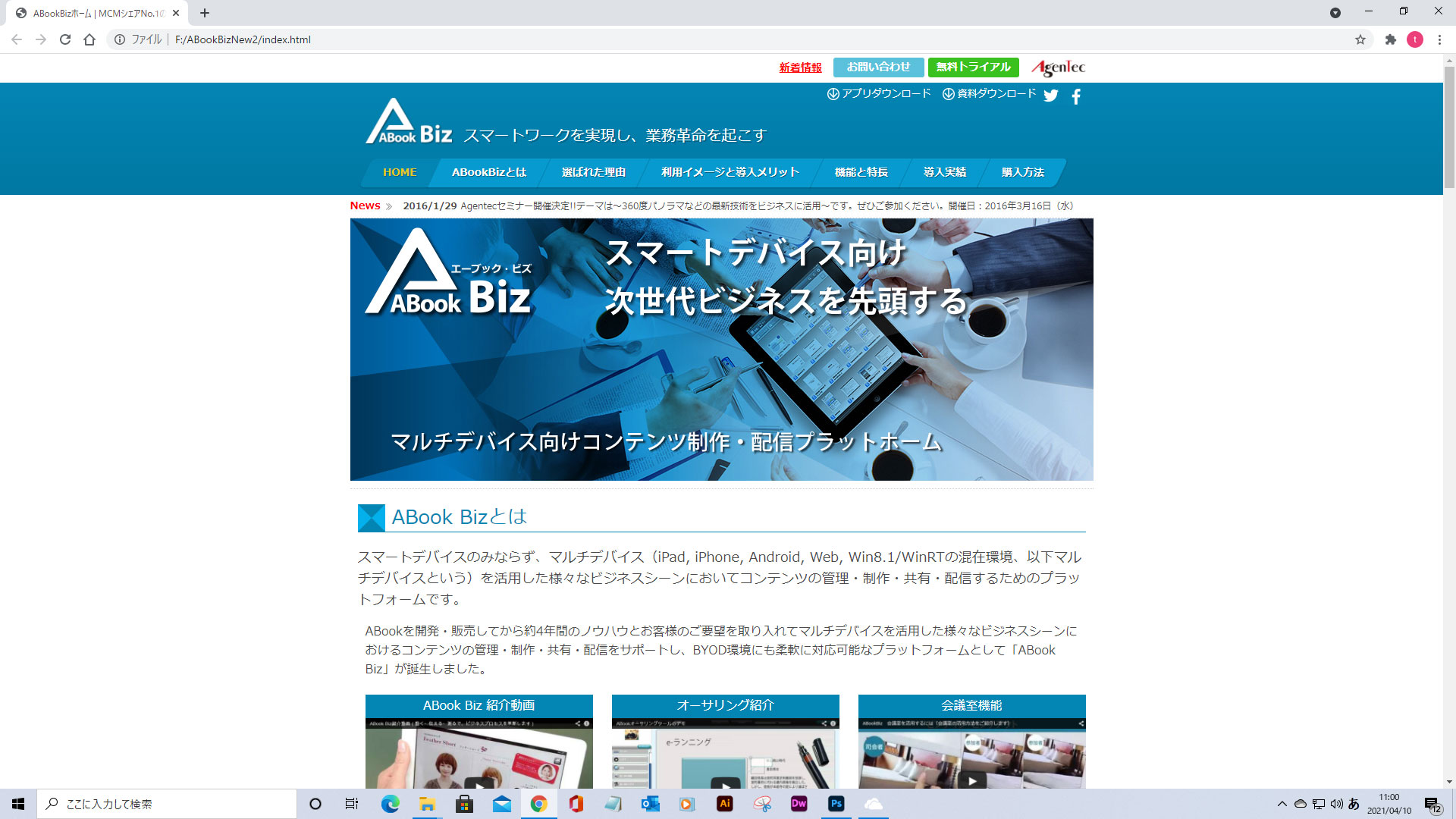 Homepage 今までの作品の紹介です。 works 東芝テクノワールド 東芝テクノワールド お問い合わせページ agentec HP Abook Biz HP Abook Biz agentec HP agentec HP agentec HP Abook Add flyer